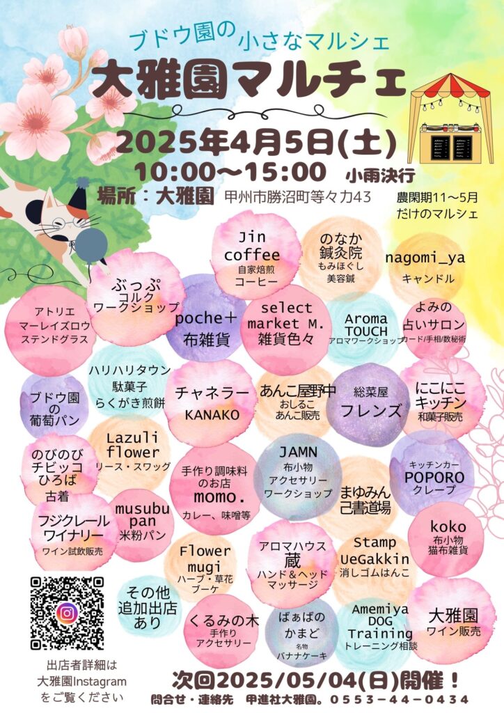 2025年4月5日(土曜日)「大雅園マルチェ」に出展します。