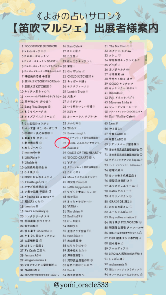 🎏5月は2回のマルシェ出店で「笛吹マルシェ」と「金川フォレスタフェリーチェ」にて対面鑑定をいたします。