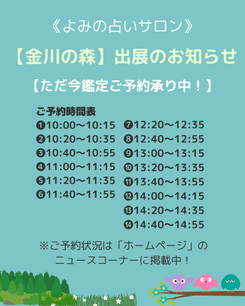 このチャンスにぜひ「金川の森」の対面鑑定にお越しくださいませ!
