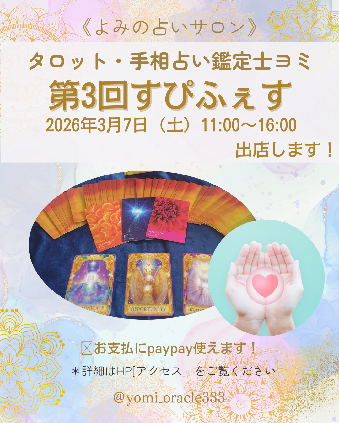 本格手相占い+カードリーディングを「マルシェ特別価格]で承ります
